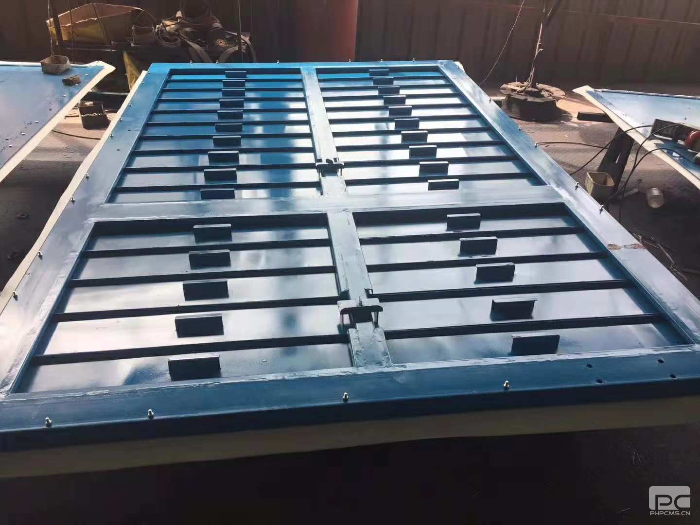 3、插板式礦用調(diào)節(jié)風(fēng)門,該風(fēng)門是把用折彎機(jī)折好的擋板依次放入門扇龍骨的軌道內(nèi),根據(jù)客戶的需要決定放入擋板的數(shù)量,從而達(dá)到客戶的通風(fēng)要求。