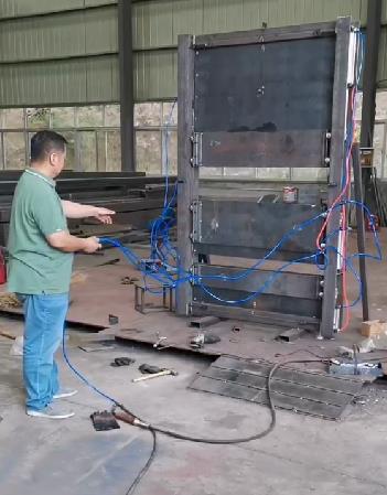 礦用防火門如果是兩扇組成一道時(shí)一般采用同向開關(guān)方式,遠(yuǎn)程自動(dòng)控制裝置部件在門扇的后面不受火災(zāi)的影響,在主運(yùn)輸巷道怎樣科學(xué)、合理的處理輸送帶與單軌吊之間的尺寸關(guān)系成為關(guān)鍵因素。