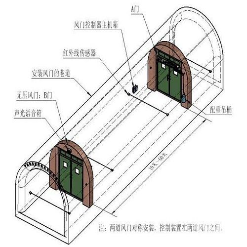 因遠(yuǎn)程智能電液自動風(fēng)門運行穩(wěn)定、動力大,可以在煤礦、鐵礦、金礦等礦山礦井通風(fēng)系統(tǒng)中施展更好的效果。