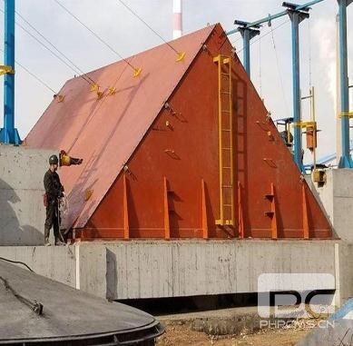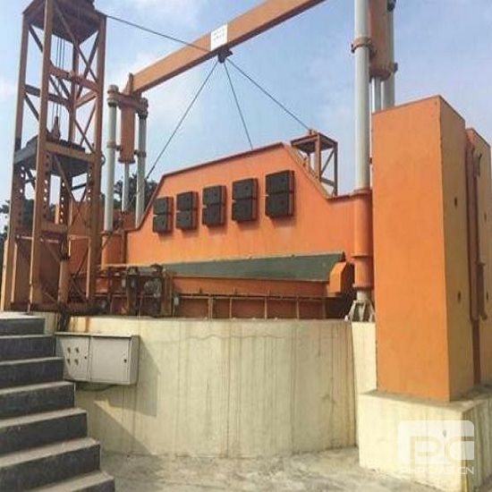 1套底部圈梁、2組配重裝置及支架、1件中心橫梁、2件門扇、D字型密封條、2套緩沖架、8個(gè)反風(fēng)裝置及滑輪等組成。