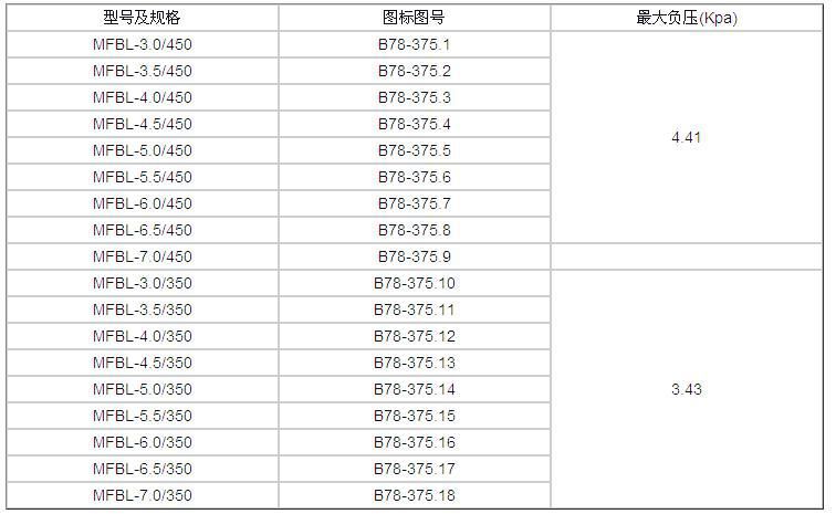 產(chǎn)品型號:MFBL D∕負壓; D為上述表格的井筒直徑