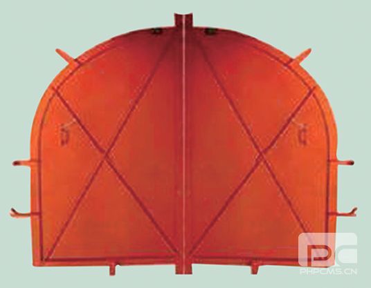 該風門主要用于礦山回風斜井井口,適用于最大負壓3500Pa抽出式通風機。當井下發(fā)生爆炸時,沖擊波將該防爆門向外沖開,緩解對風機和其他巷道安全設施的破壞程度的作用。